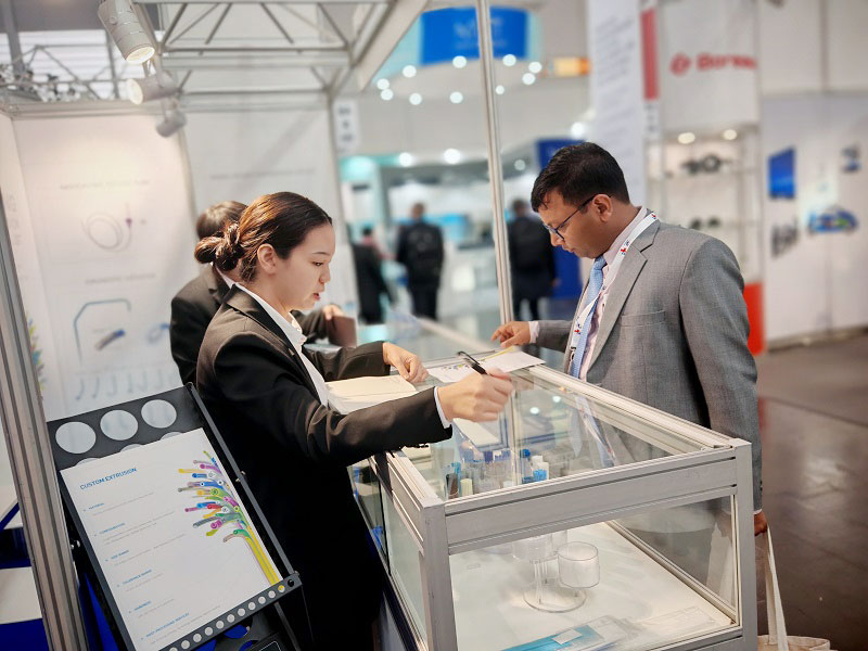 展會(huì)期間,公司團(tuán)隊(duì)與來(lái)自歐洲、北美、中東等地區(qū)的醫(yī)療機(jī)構(gòu)、經(jīng)銷商及行業(yè)專家進(jìn)行了深入交流,探討導(dǎo)管技術(shù)的國(guó)際市場(chǎng)需求與應(yīng)用前景